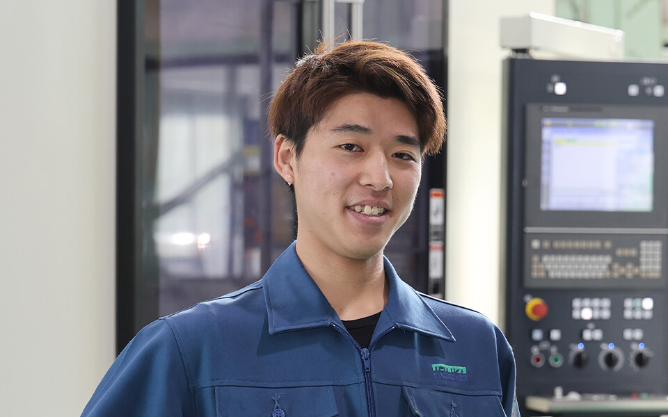 専門学校では生産技術を学び、進路は「機械を使ったものづくりに携わる」ことを希望。学びと、ものづくりへの思いを胸に就職活動を進める中で、金型製造を主とする当社に興味を持ち志望した。入社後は製造部にて金型などの製造を担当。休日は友人とスポーツを楽しむなど、アクティブに楽しんでいる。
