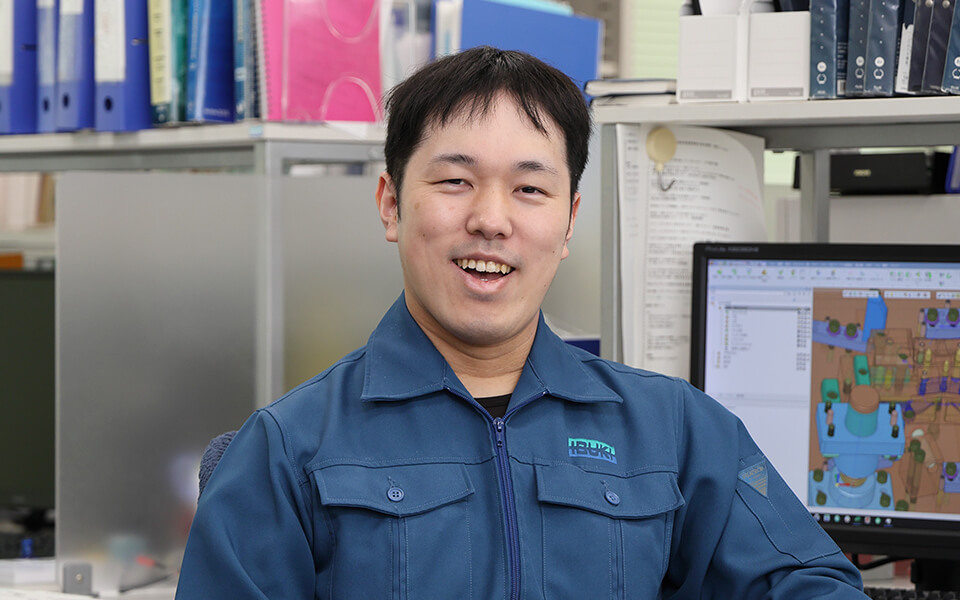 その後に設計担当としての業務を開始し、約5年が経ちました。金型製造のスタート地点で、ほぼゼロから完成をイメージしながら設計を進め、最終的に製品が完成した際にはやはり大きな達成感を覚えます。また、当社の設計は技術的な面でお客様対応も担います。金型設計者としてお客様の技術的な質問や相談に対応する基礎知識のほか、コミュニケーションスキルを身につけられました。満足いただける製品をご提供できた際には、お客様から感謝の声を直接いただく機会もあり、励みになっています。